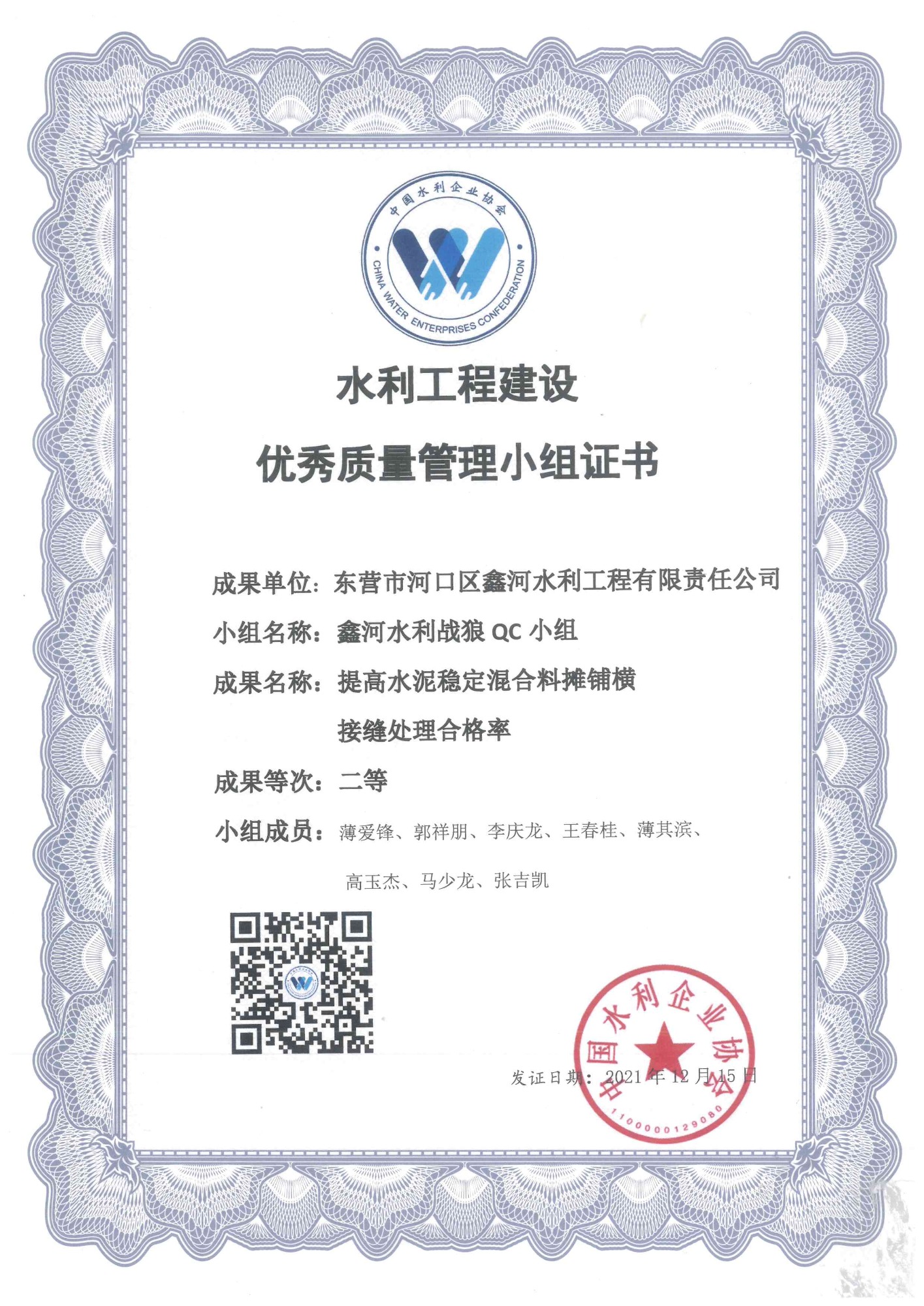 QC二等成果證書(中國水利企業(yè)協(xié)會(huì))